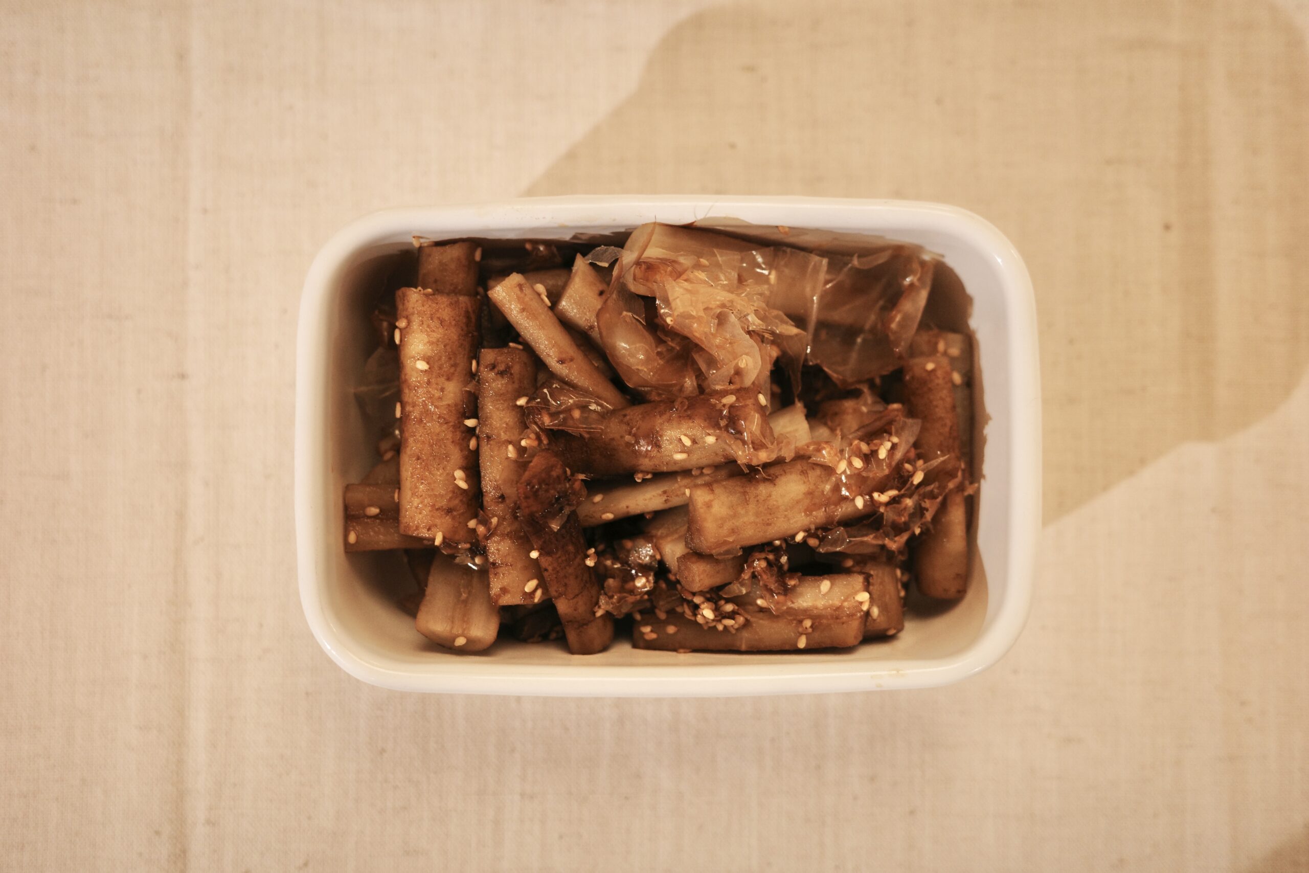 • 粗熱が取れたら、醤油>白だし>砂糖、たっぷりのかつお節といりごまをかけて完成