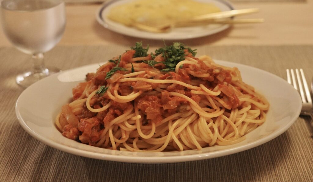 アサリとトマトのクリームパスタ