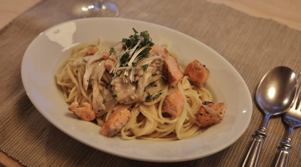 サーモンと舞茸のクリームパスタ